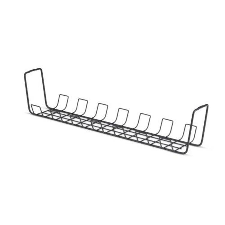 長さ約61.5cm、デスク下ネジ固定式、金属製メッシュバスケット型。ケーブル配線の整理と省スペース化を目的とした配線トレー